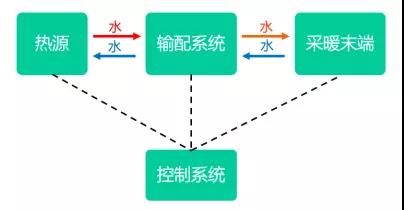 ①热源②输配系统③采暖末端④控制系统。