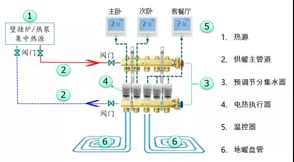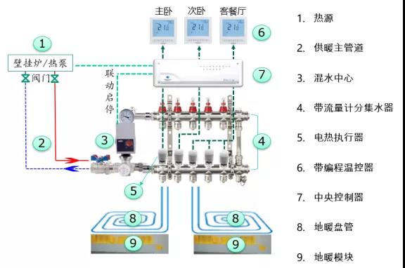 智能型地暖系统图如下图,该系统是多见于面积较大地暖系统。