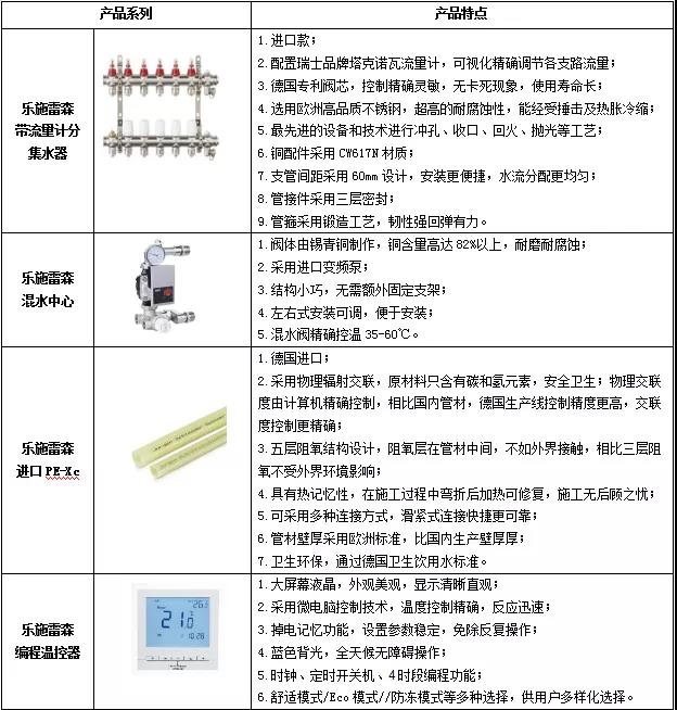 舒适型地暖系统应用到乐施雷森产品的具体特点如下: